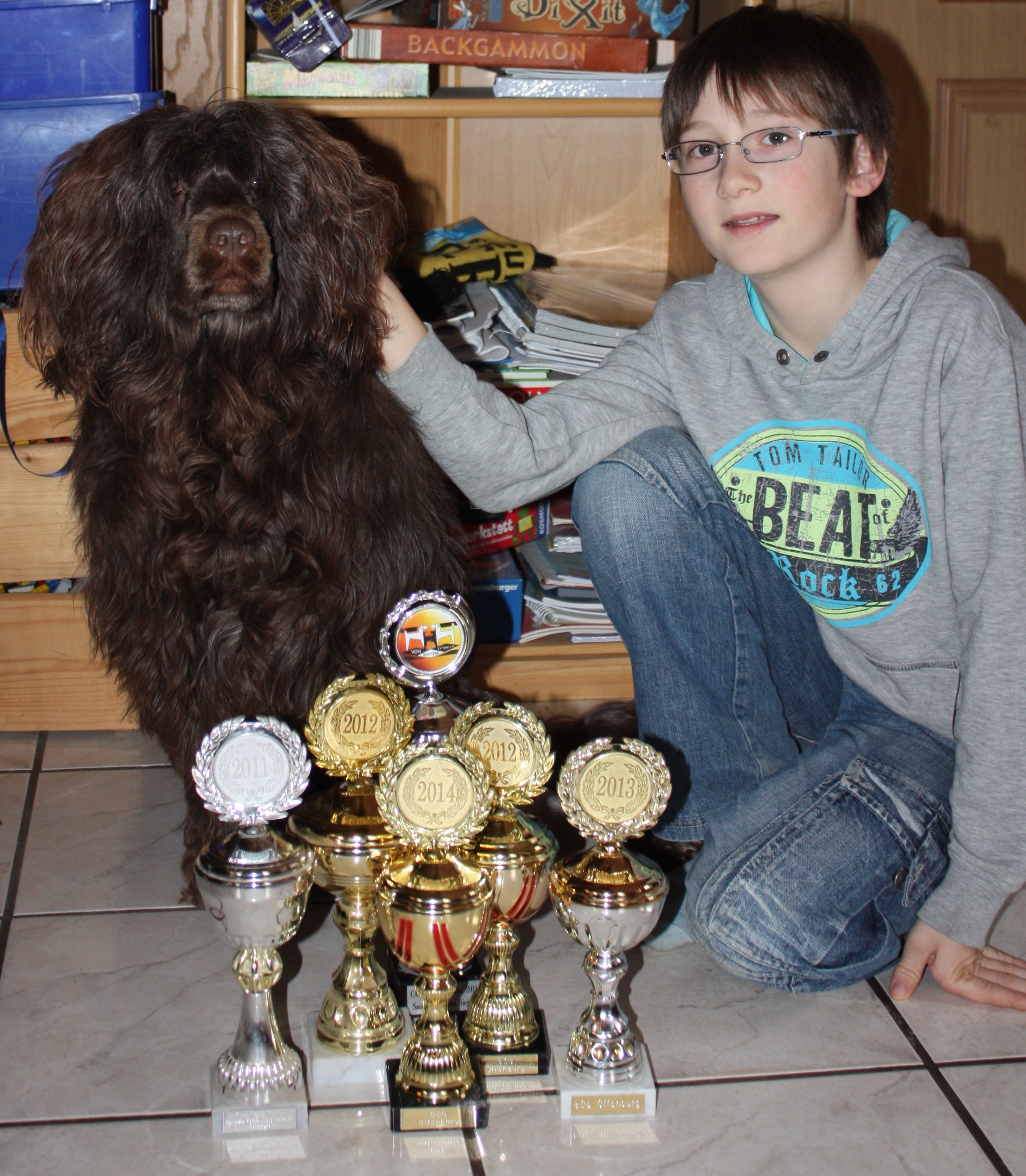 Dori ist ein typischer Portugiesischer Wasserhund und ist sowohl Jugend-Champion VDH als auch VDH Champion, hat also auf verschiedenen Ausstellungen sowohl als Junghund als auch als erwachsener Hund als Rassebester Hund bei den Portugiesischen Wasserhunden gewonnen.